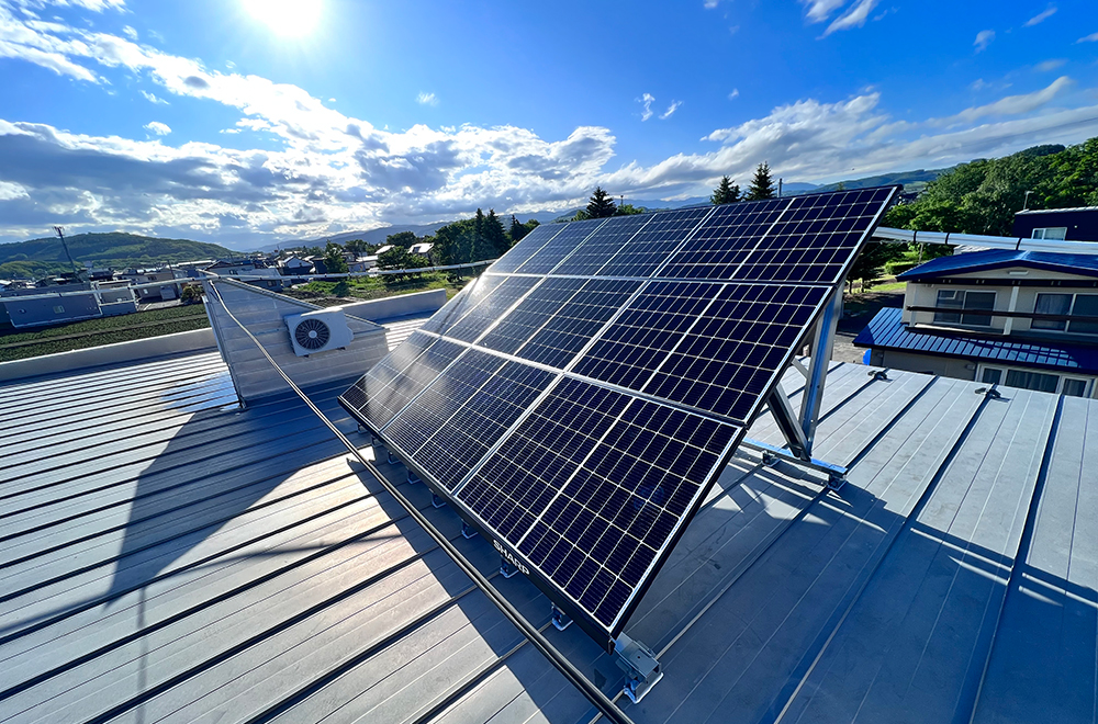 太陽光で発電した電気でEVに充電 & EVの電気を自宅で使うこともできます。蓄電池とEVに同時に充放電可能なので、発電した電気を逃さず充電できます。また、大容量のEVの電池で停電時にも安心して過ごせる環境を実現します。